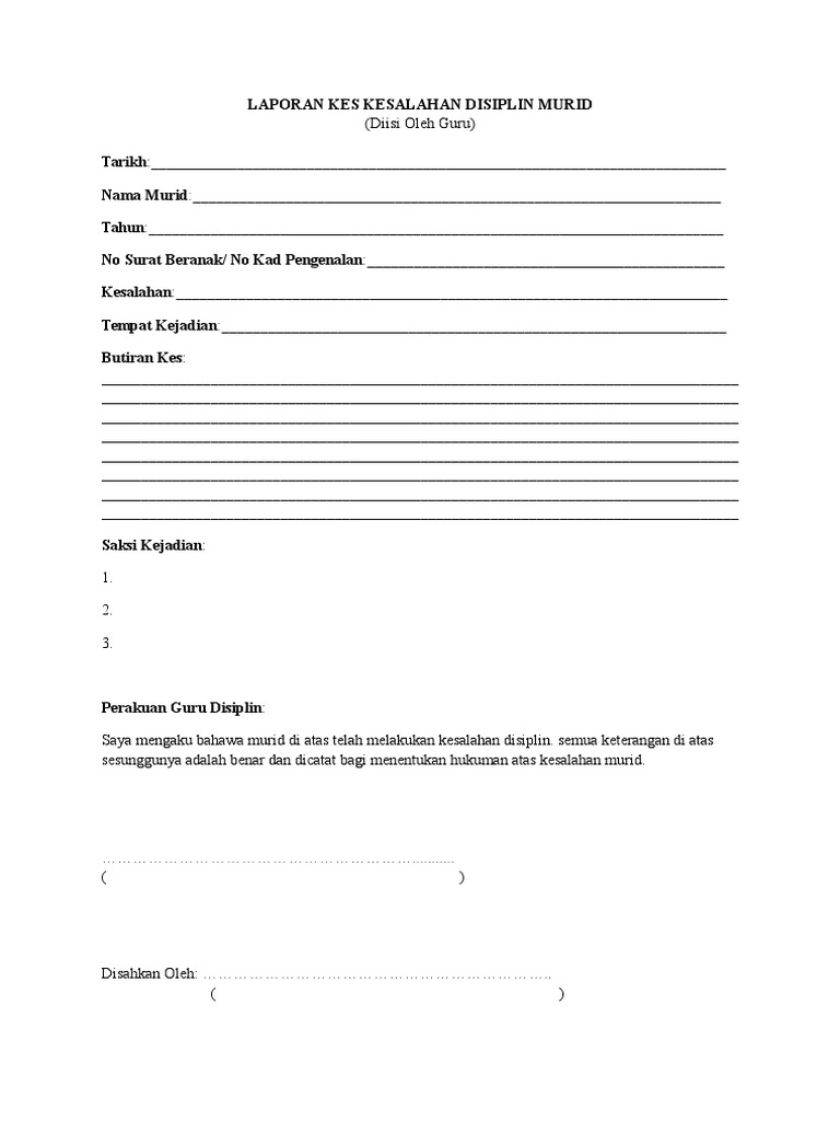 Borang Rekod Kesalahan Disiplin Murid Sk Bur