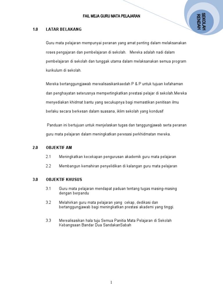 Pdf Fail Meja Guru Mata Pelajaran Hasnida Abu Hassan Academia Edu