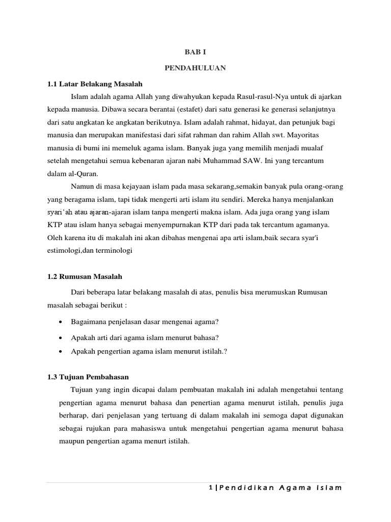 Pendidikan Agama Islam Islam Secara Etimologi Dan Terminologi